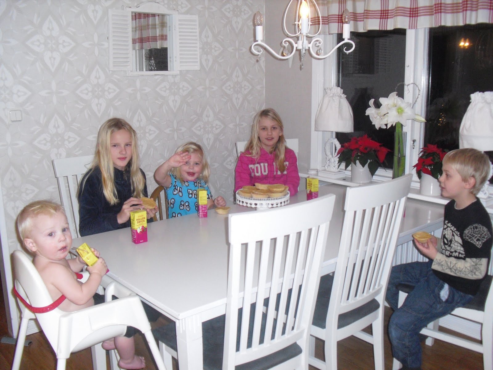 Sen hade vi lite kvällsfika och alla tyckte att det var såå gott!=) Men så här i efterhand ångrar jag mig att jag städade innan alla skulle mumsa muffins och smula ner exakt heeela köket - men det är smällar man får ta;)
